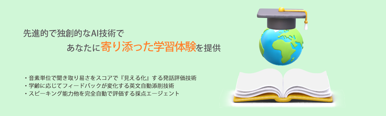 詳しくはこちら発話評価技術及び英作文の自動添削技術他を搭載し、英語教育改革・入試改革に向けて「話す・書く」の2技能を強化する検定試験対策に最適な教育機関向けの学習支援システムです。